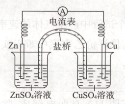 以锌铜原电池为例,盐桥中装有含KCl饱和溶液的琼脂。如图: