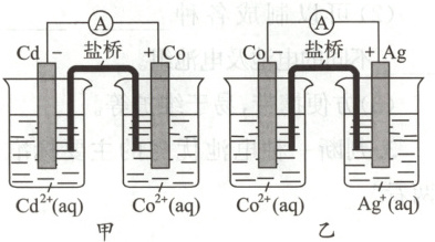 )。A.甲中电池总反应的离子方程式为Cd(s) + Co²⁺(aq) = Co(s) + Cd²⁺(aq)