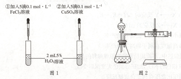 B.若图 1 所示实验中反应速率为①>②,则一定说明 $ Fe^{3+} $ 比 $ Cu^{2+} $ 对 $ H_2O_2 $ 分解催化效果好
