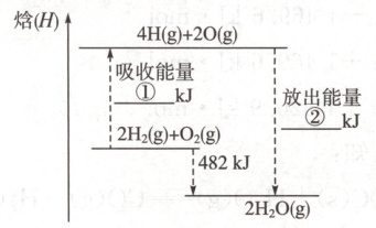 (3)根据盖斯定律,由①$2H_2(g)+O_2(g)\longrightarrow2H_2O(g)$ $\Delta H=-482\ kJ·mol^{-1}$,