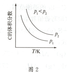 。 $(2)$根据实验测定结果描绘出了$C$的体积分数与温度的关系图像$($图$2)$: