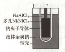 13. “ZEBRA”蓄电池的结构如图所示,电极材料多孔 Ni/NiCl₂和金属钠之间由钠离子导体制作的陶瓷管相隔。下列关于该电池的叙述错误的是(