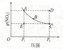 2. (双选)在温度一定时,反应 $ N_2O_4(g) \rightleftharpoons 2NO_2(g) $ 平衡体系中 $ NO_2 $ 的体积分数 $ \varphi(NO_2) $ 随压强的变化情况如图所示(实线上的点表示对应压强下的平衡点),下列说法正确的是(