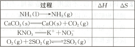解析 分解反应大多吸热,化合反应大多放热,燃烧、中和反应都是放热反应,同种物质固、液、气态时的熵值依次增大。NH₃(l)→NH₃(g)为吸热过程,△H>0;由液态变为气态,熵增,△S>0。