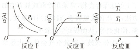 (2)根据“先拐先平数值大”的原则判断,反应Ⅱ中T₁>T₂;温度越高,平衡时C的物质的量越小,即升高温度平衡逆向移动,则正反应为放热反应。