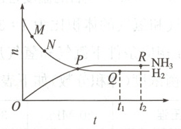 【例题2】合成氨工业对国民经济和社会发展具有重要的意义。对于密闭容器中的反应 $ {N_{2}(g) + 3H_{2}(g)\rightleftharpoons 2NH_{3}(g)} $,在 $ 400\ {^{\circ}C} $、 $ 30\ {MPa} $ 下, $ n({NH_{3}}) $ 和 $ n({H_{2}}) $ 随时间变化的关系如图所示。据图推测下列叙述正确的是(