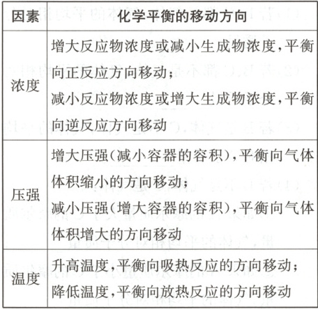 一可逆反应,在一定条件下达到化学平衡状态。保持其他条件不变,只改变一个因素,平衡的移动方向遵循下列规律: