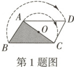 1. (2020河北10题)如图,将$\triangle ABC$绕边$AC$的中点$O$顺时针旋转$180^{\circ}$.嘉淇发现,旋转后的$\triangle CDA$与$\triangle ABC$构成平行四边形,并推理如下: