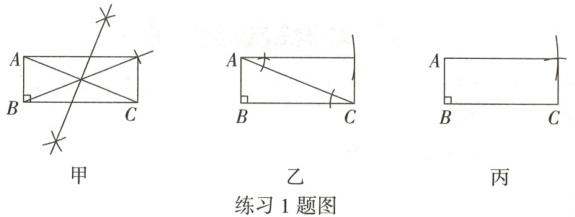 练习 1 综合实践课上,老师让同学们利用尺规借助直角三角形$ABC$作矩形,如图是甲、乙、丙三名同学作的矩形,其中正确的是 (
