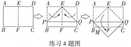 练习 4 如图,在矩形纸片$ABCD$中,$AB = 2$,$AD = 3$,$E$,$F$分别为$AD$,$BC$边的中点,将此矩形纸片按如图所示的方式折叠,则线段$BM$的长为 (