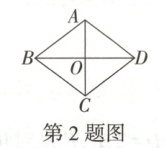 2. (冀教八下例题改编)如图,菱形 $ ABCD $ 的周长为 20,点 $ O $ 为对角线 $ AC $ 和 $ BD $ 的交点,$ AO = 3 $,则 $ BD $ 的长度为 (