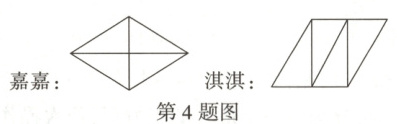 4. (人教八下例题改编)一次实践活动课上,老师让同学们用四张全等的含 $ 30^{\circ} $ 角的直角三角形纸片拼成菱形,如图是嘉嘉和淇淇的拼接方式,下列说法正确的是 (