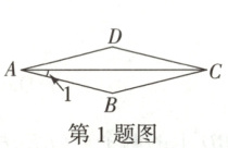 1. (2019 河北 5 题)如图,菱形 $ ABCD $ 中,$ ∠D = 150^{\circ} $,则 $ ∠1 = $ (