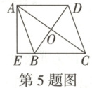 5. (冀教八下习题改编)如图,菱形 $ ABCD $ 的边长为 6,对角线 $ AC,BD $ 相交于点 $ O,AE ⊥ BC $ 交 $ CB $ 的延长线于点 $ E $,若 $ OB = 2\sqrt{3} $,则 $ BE $ 的长为 (