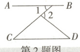 2. 如图,$AB// CD$,$\angle 2 = 2\angle D$,若$\angle 1 = 40^{\circ}$,则$\angle 2$的度数为(