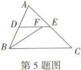5. 如图,在$\triangle ABC$中,$D$,$E$分别为$AB$,$AC$边的中点,$BF$平分$\angle ABC$交$DE$于点$F$,若$AD = 3$,$BC = 8$,则$EF$的长为(