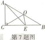 7. 如图,在$Rt\triangle ABC$中,$\angle ACB = 90^{\circ}$,$O$为$AB$的中点,点$E$在$BC$上,且$CE = AC$,$\angle BAE = 15^{\circ}$,则$\angle COE$的度数为(