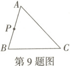 9. 如图,在$\triangle ABC$中,$P$是$AB$边上一点,在$AC$边上求作一点$Q$,使得$\triangle AQP\backsim\triangle ABC$。