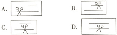 4. 如图,在下面的四个盒子中,每个盒子里都有两根小棒,把其中的一根小棒用剪刀按图中所示的位置剪成两段,这两段小棒再与另一根小棒首尾相接,能够围成一个三角形的是(