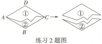 练习 2 如图,将菱形 $ ABCD $ 沿过顶点 $ A,C $ 的一条折线撕成①和②两部分,则下列说法正确的是 (