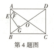 4. 如图,在矩形$ABCD$中,$DC = 6$,$AD = 8$,对角线$AC$与$BD$交于点$O$,$E$为$AB$边上一个动点,$EF\perp AC$,$EG\perp BD$,垂足分别为$F$,$G$,则$EF + EG =$