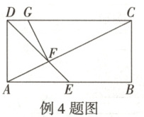 例4 如图,矩形$ABCD$中,$\angle ADC$的平分线$DE$交$AB$于点$E$,连接$AC$交$DE$于点$F$,过点$F$作$FG\perp AC$交$CD$于点$G$,若$CF = 2AF = 4$,则$DG$的长为