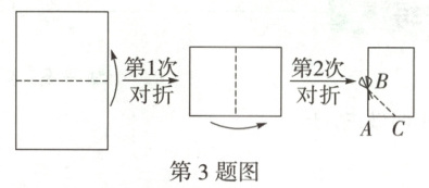 3. (冀教八下练习改编)如图所示,将一张矩形纸片沿虚线对折两次,当剪刀与纸片的夹角$\angle ABC = 45^{\circ}$时,已知$AB = 4\mathrm{cm}$,则剪下来图形的周长为 (