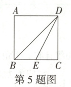 5. (人教八下习题改编)如图,在正方形$ABCD$中,$AB = 2$,$E$为$BC$的中点,连接$BD$,$DE$,求$\tan\angle BDE$的值为 (