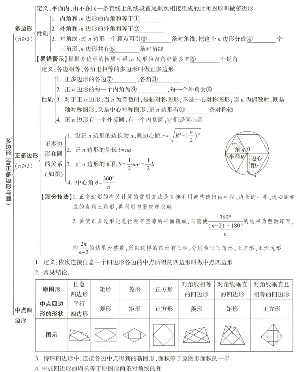 ⑩ $\frac{360°}{n}$