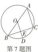 7. (冀教九上习题改编)如图,$AB$是$\odot O$的直径,点$C$在$\odot O$上,连接$AC$,$BC$,过点$O$作$OD// AC$分别交$BC$,$\odot O$于点$E$,$D$,若$BC=8$,$DE=2$,则$\odot O$的半径为(