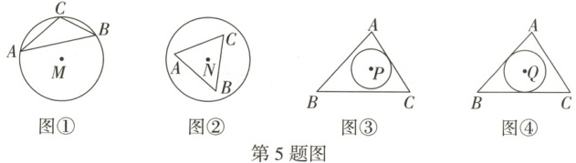 5. 以下对圆心和$\triangle ABC$的关系描述正确的是(