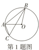 1. (北师九下习题改编)如图,点$A$,$B$,$C$均在$\odot O$上,若$\angle ACB=56^{\circ}$,则$\angle BAO$的度数是(