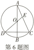 6. (冀教九上习题改编)如图,$AB$是$\odot O$的直径,$CD$是$\odot O$的弦,且$AB\perp CD$,连接$DO$并延长交$AC$于点$E$,若$\angle BAC=24^{\circ}$,则$\angle CED$的度数为(