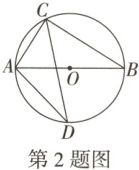 2. 如图,$\triangle ABC$的顶点在$\odot O$上,$AB$是直径,点$D$在$\odot O$上,$\angle BAD=48^{\circ}$,则$\angle ACD$的度数是(