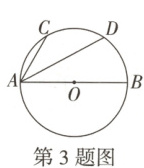 3. (冀教九上做一做改编)如图,$AB$是$\odot O$的直径,点$C$在$\odot O$上,若$AB=2AC$,点$D$是$\overset{\frown}{BC}$的中点,则$\angle CAD$的度数为(