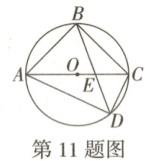 11. (人教九上例题改编)如图,四边形$ABCD$是$\odot O$的内接四边形,对角线$AC$与$BD$相交于点$E$,若$CD:BA=3:5$,则$S_{\triangle DCE}:S_{\triangle ABE}$为(