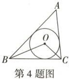 4. (人教九上例题改编)如图,在$\triangle ABC$中,$\angle ABC = 46^{\circ}$,$\angle ACB = 84^{\circ}$,$\odot O$是$\triangle ABC$的内切圆,连接$OB$,$OC$,则$\angle BOC$的度数为(