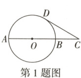 1. (北师九下复习题改编)如图,$AB$为$\odot O$的直径,延长$AB$至点$C$,使$AC = 3BC$,过$C$作$\odot O$的切线$CD$,切点为$D$,若$\odot O$的半径为$2$,则线段$CD$的长为(
