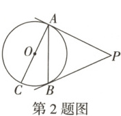 2. (人教九上习题改编)如图,$PA,PB$是$\odot O$的切线,$A,B$为切点,$AC$是$\odot O$的直径,$\angle BAC = 25.5^{\circ}$,则$\angle P$的度数为(