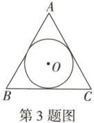 3. (人教九上例题改编)如图,若等边$\triangle ABC$的内切圆$\odot O$的半径为$2$,则$\triangle ABC$的边长为(