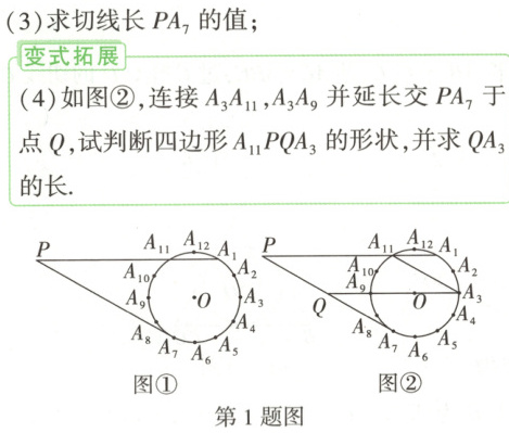 (4)如图②,连接$A_3A_{11}$,$A_3A_9$并延长交$PA_7$于点$Q$,试判断四边形$A_{11}PQA_3$的形状,并求$QA_3$的长.