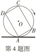 4. 如图,矩形$ABCD$的外接圆$O$与水平地面相切于点$A$,已知圆$O$的半径为$4$,且$\overset{\frown}{BC}=2\overset{\frown}{AB}$. 若在没有滑动的情况下,将圆$O$向右滚动,使得$O$点向右移动了$50\pi$,则此时与地面相切的弧为(