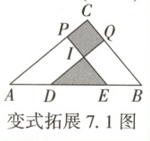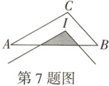 7. (2018 河北 15 题)如图,点$I$为$\triangle ABC$的内心,$AB = 4$,$AC = 3$,$BC = 2$,将$\angle ACB$平移使其顶点与$I$重合,则图中阴影部分的周长为(