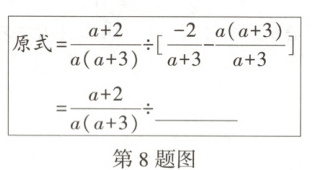 8. 如图是化简“$\frac{a + 2}{a^{2}+3a}÷(\frac{-2}{a + 3}-a)$”的部分解题步骤,则“”上可以填 (
