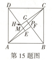 15. 万唯原创 如图,嘉嘉用四个全等的直角三角形拼接了一个“赵爽弦图”,其中小正方形$EFGH$的面积为1. 连接$AC$,交$BG$于点$P$,交$DE$于点$M$,则$S_{\triangle AEP}-S_{\triangle CGP}=$