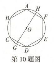 10. 万唯原创 如图,$\odot O$的内接正六边形$ABCDEF$的面积为$54\sqrt{3}$,$GH$为$\odot O$的直径,且点$G,H$分别为$\overset{\frown}{CD},\overset{\frown}{AF}$的中点,若以点$E$为圆心,$4\sqrt{3}$长为半径画弧,与$GH$相交于点$M$,则$\angle GEM$的度数为 (