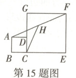 15. 如图,在正方形$ABCD$和正方形$CEFG$中,点$D$在$CG$上,点$H$是$AF$的中点,若$BC=1$,$CH=3$,则$CG$的长为