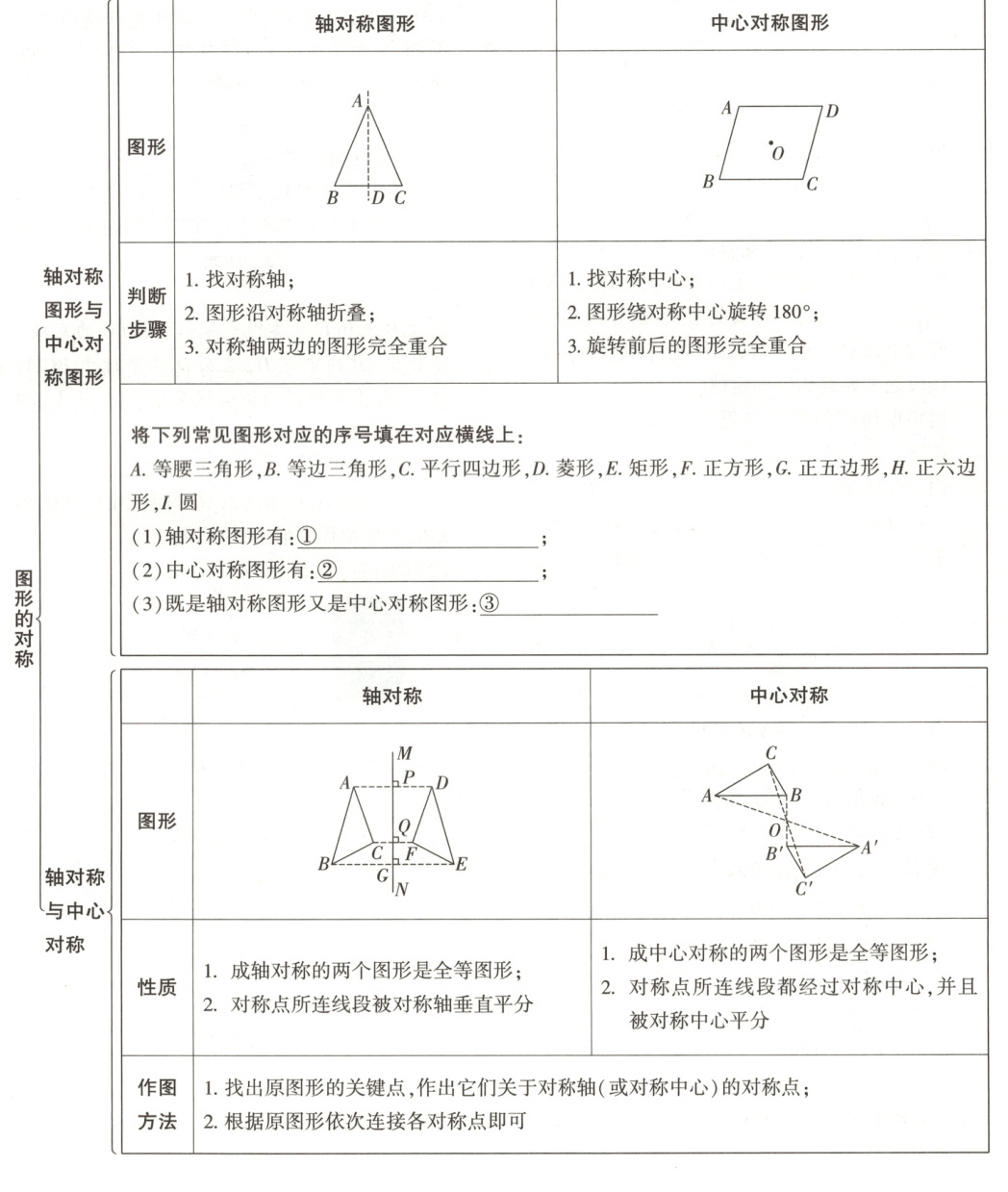 (1) ① A, B, D, E, F, G, H, I
