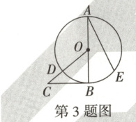 3. 如图,AB 是⊙O 的直径,BC 与⊙O 相切于点 B,连接 OC 交⊙O 于点 E,E 是 AB 右侧⊙O 上一点,且⌢BE=⌢BD,若∠C=40°,则∠BAE 的度数为(