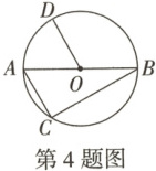 4. 如图,AB 是⊙O 的直径,点 D 在⊙O 上,连接 OD,∠BOD=120°,过点 A 作 AC//OD 交⊙O 于点 C,连接 BC,则∠ABC 的度数为(